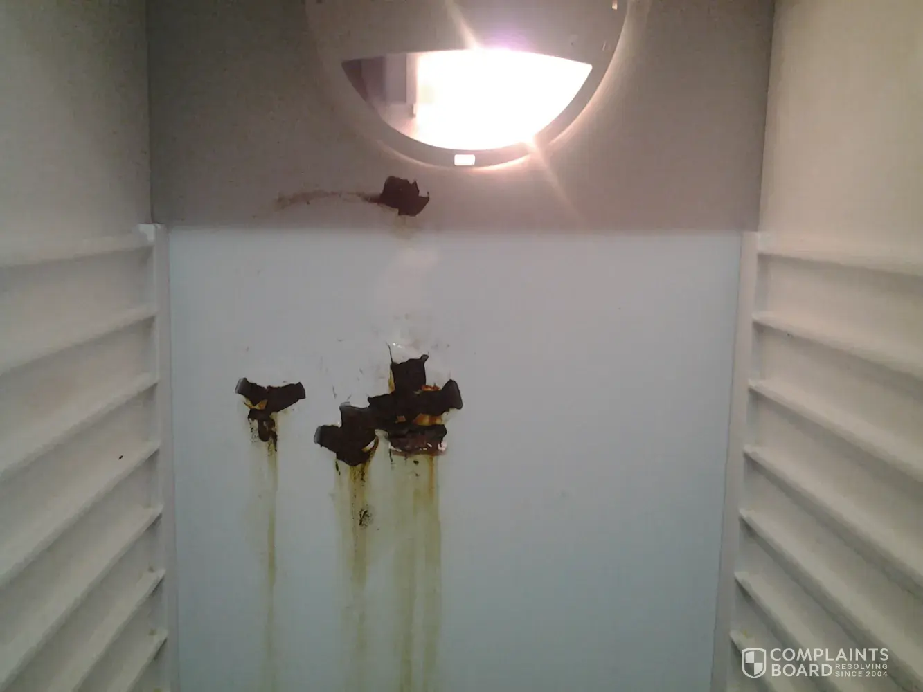 The paint on the inside of my fridge is coming off . We bought the fridge in september 2009 and is still brand new. This is unacceptable. Is there anything you can do for me?