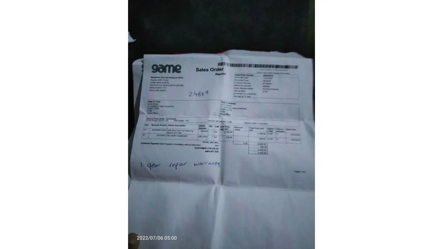 The part was in “Durban†Warehouse, to be sent to “Durban†Sevice center. I am still waiting “this is crazyâ€.