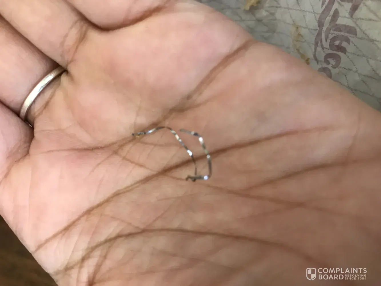 I was eating my burrito when something sharp stabbed me in the cheek. There was a long piece of metal in my burrito possibly from a grill brush! I am very upset about this and hope it doesn't happen to anyone else. Metal grill brushes are very dangerous as the pieces and break off and become embedded in ones throats which is very uncomfortable and hard to remove. I am very disappointed in Del Taco that the grill wasn't at least wiped down after being scrubbed. This could have been easily avoided.