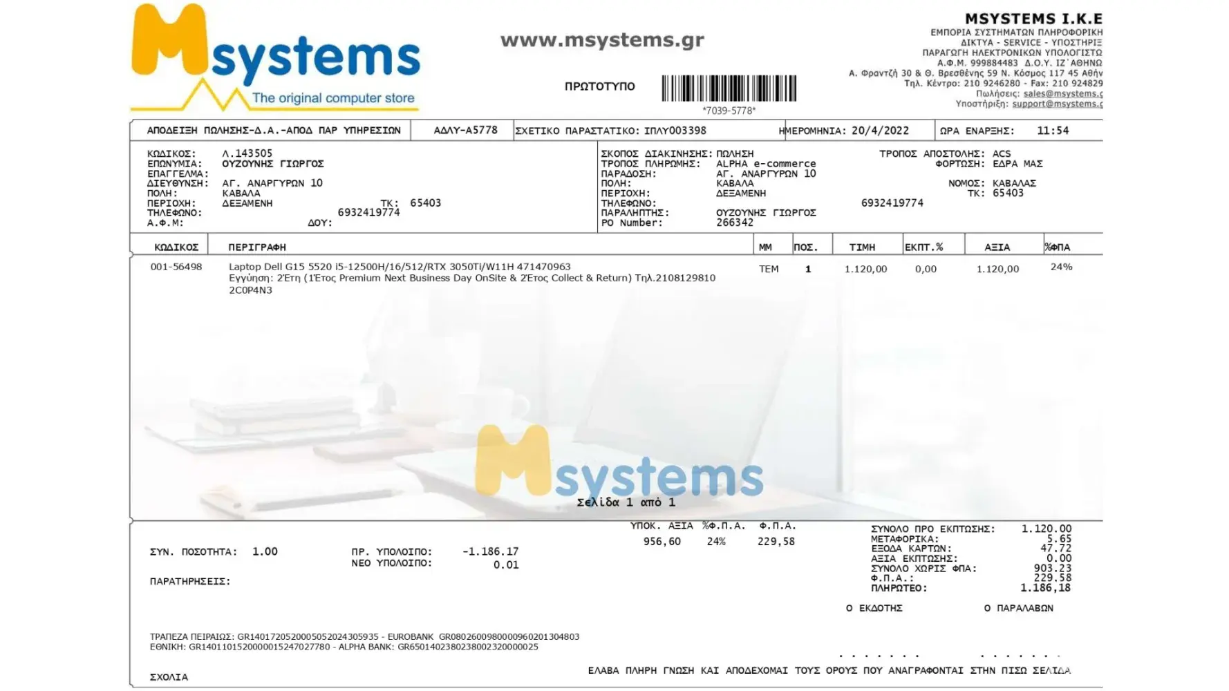 I would like your help regarding a problem I am having with Dell Greece.