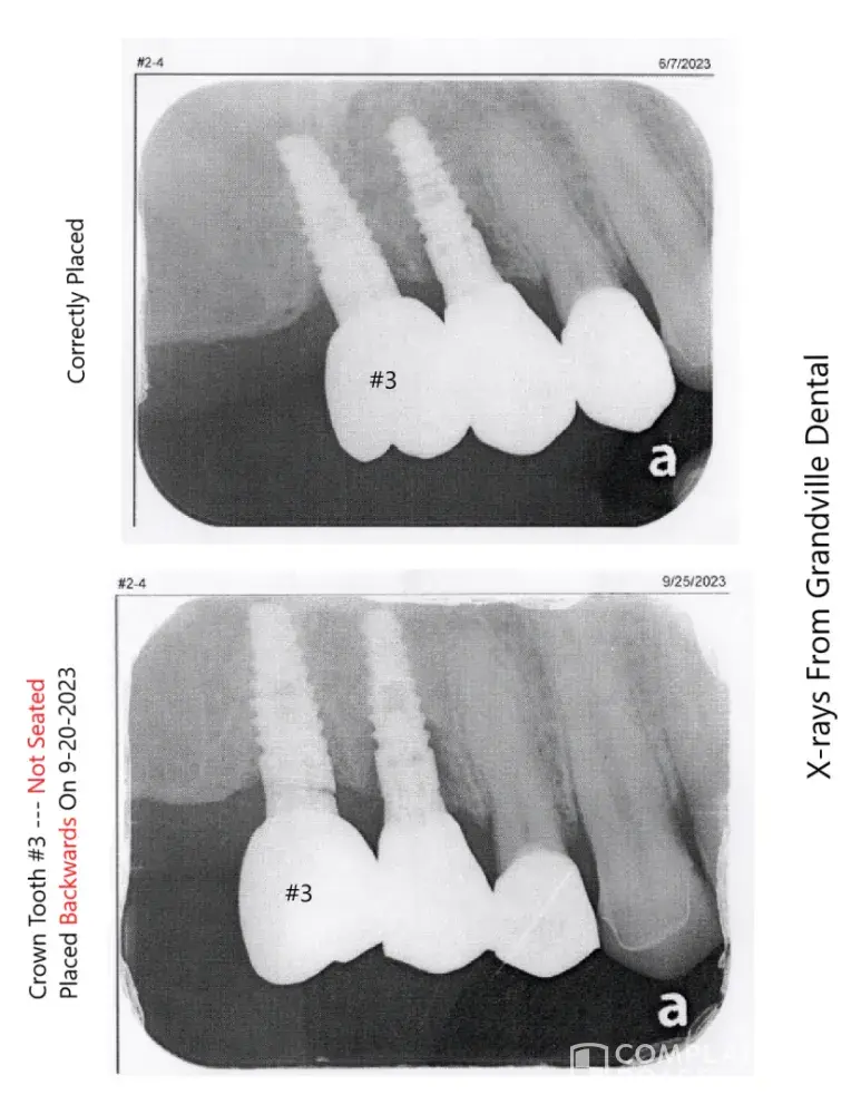 I've spent over $50,000 on a full mouth restoration through Grandville Dental Health Center plus another $4,000 figuring out issues and it took over a year but I found out they messed up by placing a crown 180 degrees backwards and wrecked my full restoration then abandon me for no reason because they couldn't figure it out. Permanent adjustments were made...
