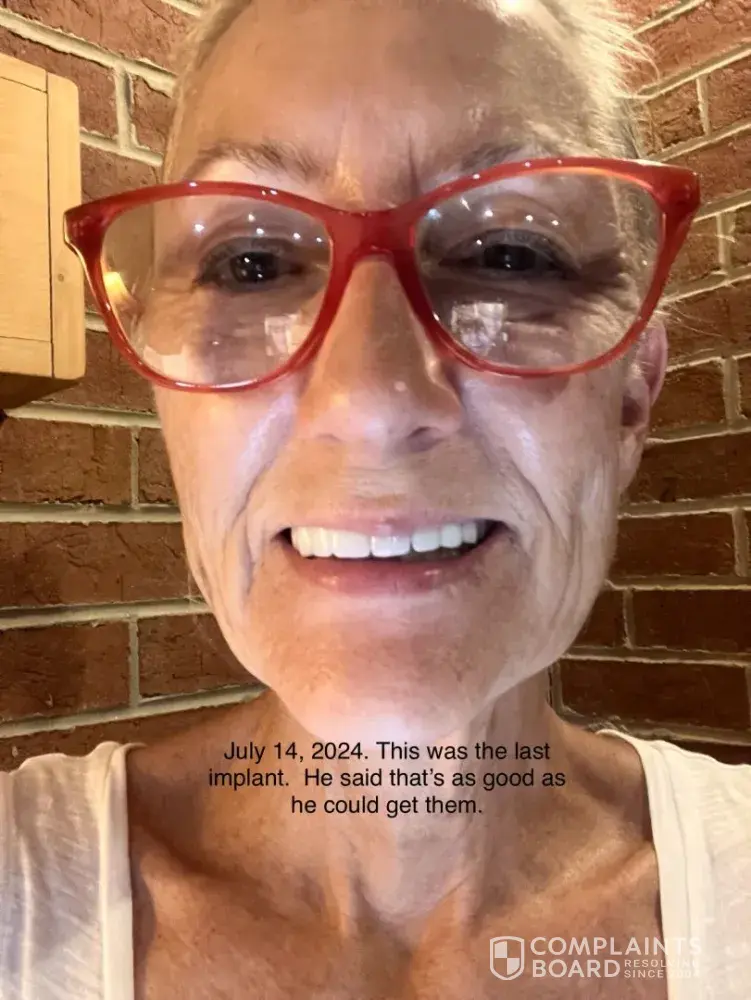 October of 2022 I was promised a “Hollywood Smile” out the door in 6 months. It has been over 2 years and I was left with a low grade upper permanent implant. The implant is not flush with my gums so when I grin it looks like I have a mustache. The implant is breaking, it has broken my bottom teeth, knocked out my filings, I talk weird & my smile i...
