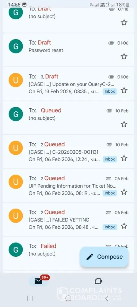 Complaining about 2 of my uif payment that'd still outstanding and not paid they said they have senders an email to release my money ND and still no payments
