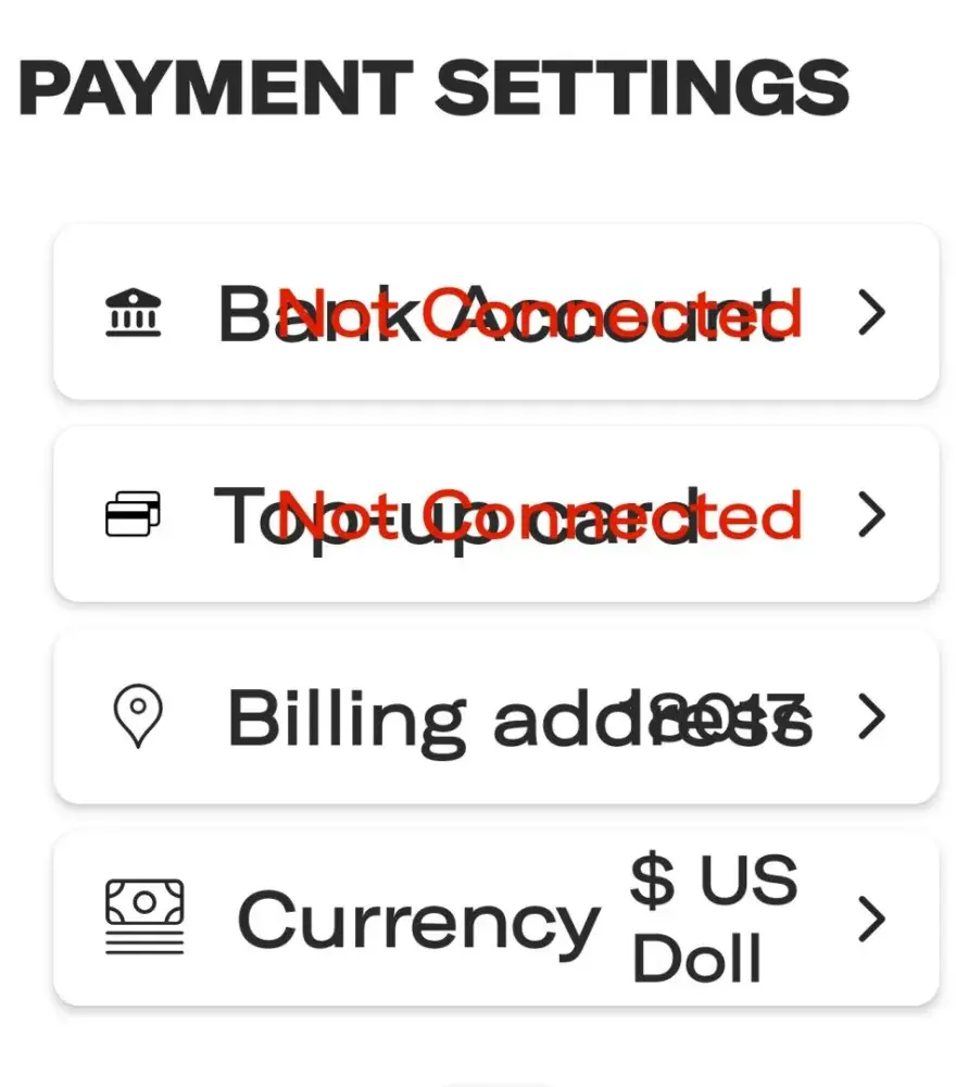 Trying to add my bank account info for 2 days. I tried to contact support and it is not clear were to send a support resolution. In addition, it keeps saying "not connected" over the bank account tab.