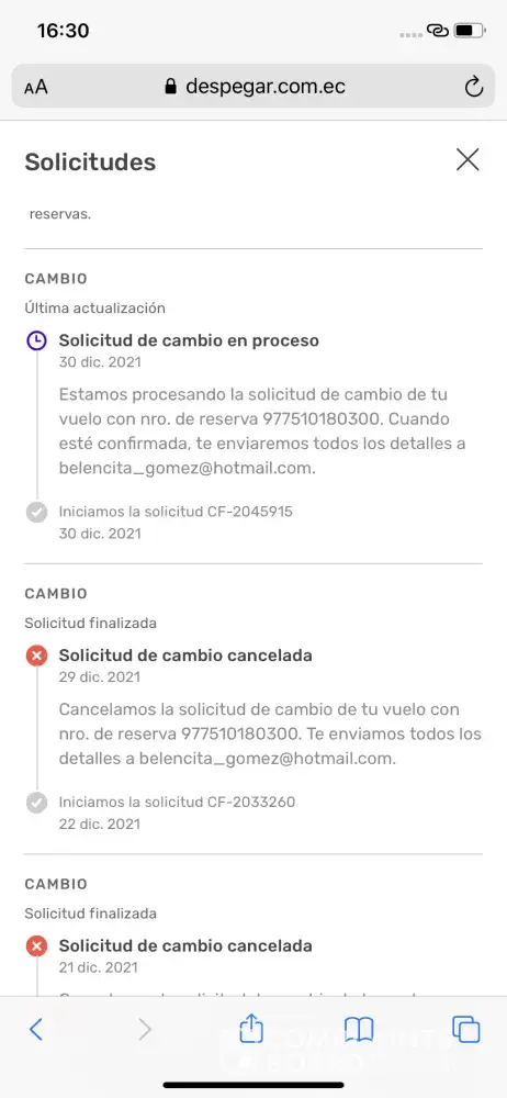 La ruta Miami - Gye, fue reportada por afectación de covid-19 para ser gestionada a través del sitio oficial MIS VIAJES DE DESPEGAR. Mencionada solicitud de exoneración fue aprobada por AVIANCA con el waiver WVnov21-[protected], sin embargo DESPEGAR no me permite hasta el momento realizar las opciones de cambio de vuelo. Una opción para el 07 de enero que ACEPTE y coloque los datos de la tarjeta para pagar, fue cancelada por ellos mismos.. Por varias ocasiones he llamado al Call center de DESPEGAR y me indican que ellos no pueden darme solución, y AVIANCA me indica que debo realizar el trámite a través de despegar