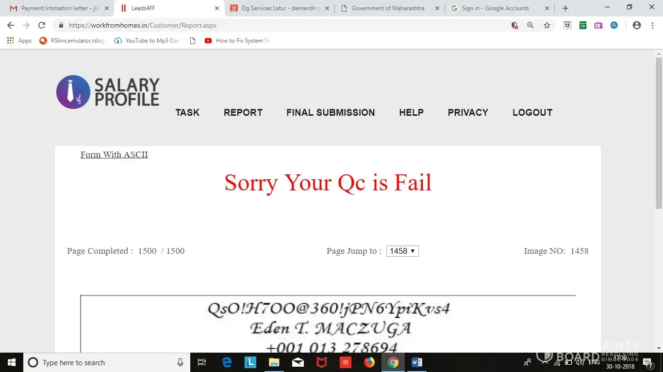 . Sir a company Named DG SERVICES that is from Latur Maharastra is a form filling company and helpline email ID : ff.helpline@gmail.com and helpline contact no [protected]. One of their Employee once call me and said offering you a form filling job sent me a adder proof document and I sent him and then they made a agreement on a non Judiciary stamp of my name as second party and their own as second party. Then they sent me a user id or password and sent me a website link named workfromhomes.in with their conditions, and they assigned me 1500 forms for form filling work 10 days time, which completed within 7 days itself due to my typing speed of 50 wpm and with 98% accuracy, so I know my capability and accuracy of my job, but when I completed and submitted my work on 7th day date next day itself I got replied that your qc result are now in website when I went and checked with website I found its mentioned qc results failed, but the data which I typed and which they sent in qc results both differs and showing more errors .now they are demanding money within nest day of submission of there qc result and continuously calling, SMS to pay money and when I googled and search the details regarding this company I found lot of people already filed complaint against the above mentioned company, after that a advocate of them contact me and demand money from me . And threatened me that if I don’t give money to them then they will file a case against me . I got a mail dated on 28 /08/2018 stating we legal department DG services hereby having your case for QC Fail of work by the advocate named AJAY GOEL, Surat, Gujarat, contact no: [protected]. And threatened me that make payment of RS. 8620, provide the screenshot of successful payment on this email ID associationadvocate.legaldepart@gmail.com. On the basis of that they will provide me NOC letter and threatened me that If payment is not done then need to pay Rs. 50000 for total loss to his client. It also another advocate named M. PATEL, contact no: [protected] send me a legal notice by an email ID associateadvocate08@gmail.com on 31/08/2018 and demand money within 4 days Rs .4900 + Rs. 2500, Sir I am a student, It is not possible to give money to me. Please help me sir.