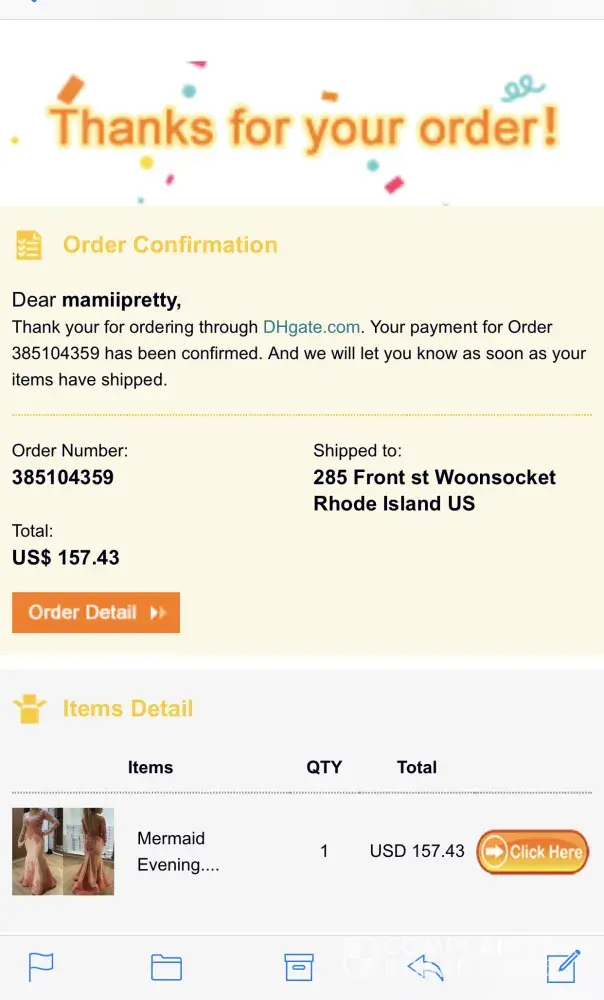 Today we logged on to a rarely used Gmail account, and suddenly find emails from DH Gate saying that the package was shipped and delivered, and that we have five days from two weeks ago to lodge a complaint or the money was gone.