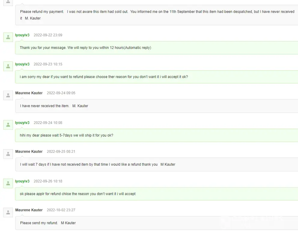 Desired outcome: Please ensure my item is sent or I would like a full refund