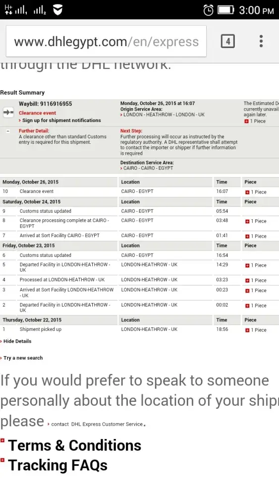 From date 24-10-2015 Dhl Egypt say that custom clearance is completed