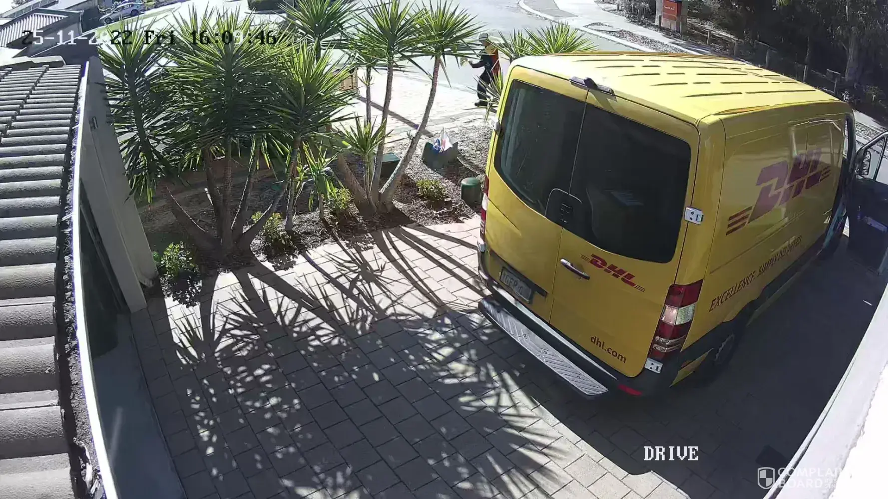 On Friday 25 November 2022 a DHL Mercedes Van '1GFP 671' backed into my driveway then proceeded to then deliver a parcel to the next door neighbour. Whilst it is illegal to park on someone elses driveway or to block access to that driveway, it is note worthy that, whilst that neighbours driveway had two cars they owned and parked on their driveway, it does not give that driver the right to block my driveway or park on it when delivering to another address. In particular, whilst the neighbour is a corner block, there is no reason why he could not have parked down the otherside of his block (Flagstaff Road) or, parked in one of the two car spaces in front of the park opposite, or, on the side of the road opposite. Blocking my driveway is illegal. That a member of my household was due any moment is irrelevant s the law clearly says, not in front of or on someone's driveway. I have a photo and a video from my security cameas, happy to send to you. However, it is odvious, YOU must inform your drivers it is both illegal, inappropriate and unreasonable to block or park their vehicle on the driveway. This Van has blocked my driveway once before. Maybe it is the direction of DHL to deliver quickly and blocking someone's drive is an acceptable procedure. It is not. Please advise this driver and others it is illegal. Thank you.