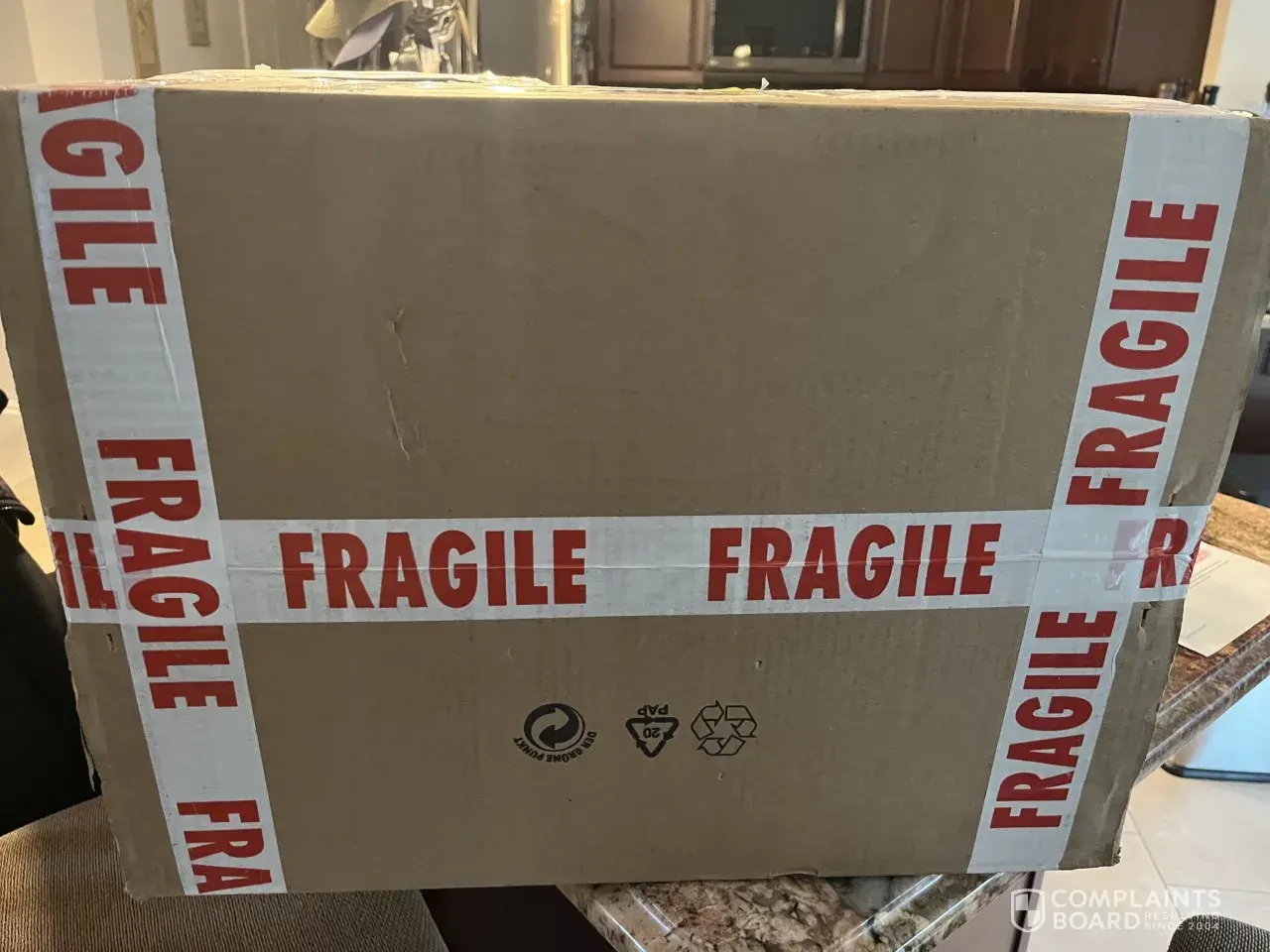 We were in the house but the driver failed to knock and left it outside the garage, and must have illegally signed the sheet on my behalf.