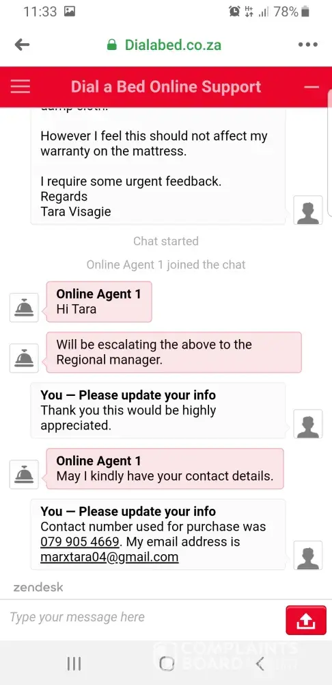 Good Day I am a very irate client currently and I am willing to give dial a bed a chance to resolve the issue before I take this much further. Please read complaints in screen shots provided that I have complained before and was getting feedback, however I assume as the store has obviously tild head office that they have spoken to me. Head office ha...