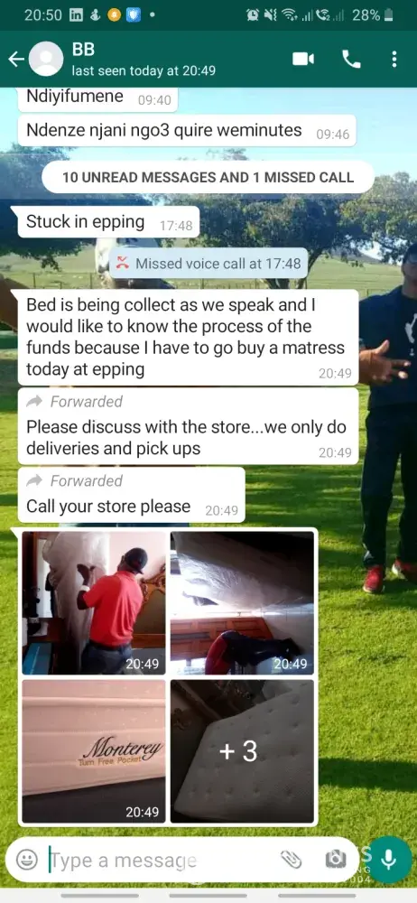 When I got back to the agent in Bloemfontein branch on 16th June 2022 the sales lady asked for photos of the mattress which I send to her the same day.