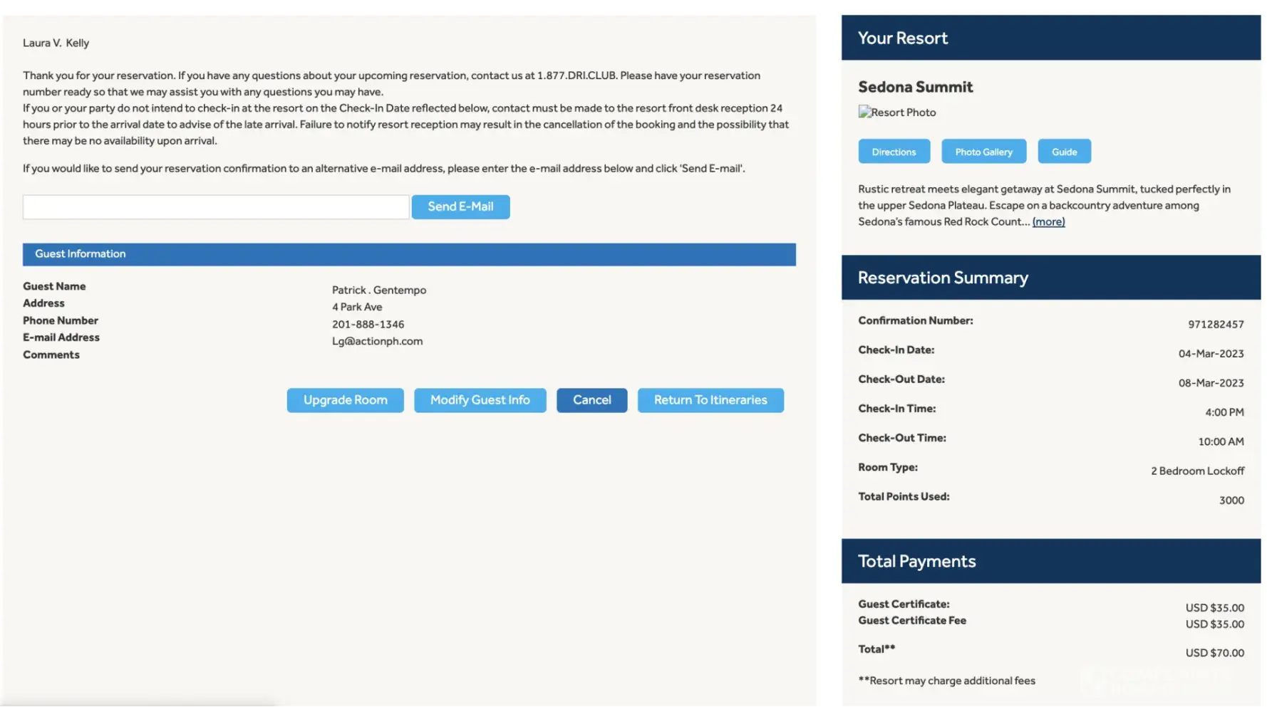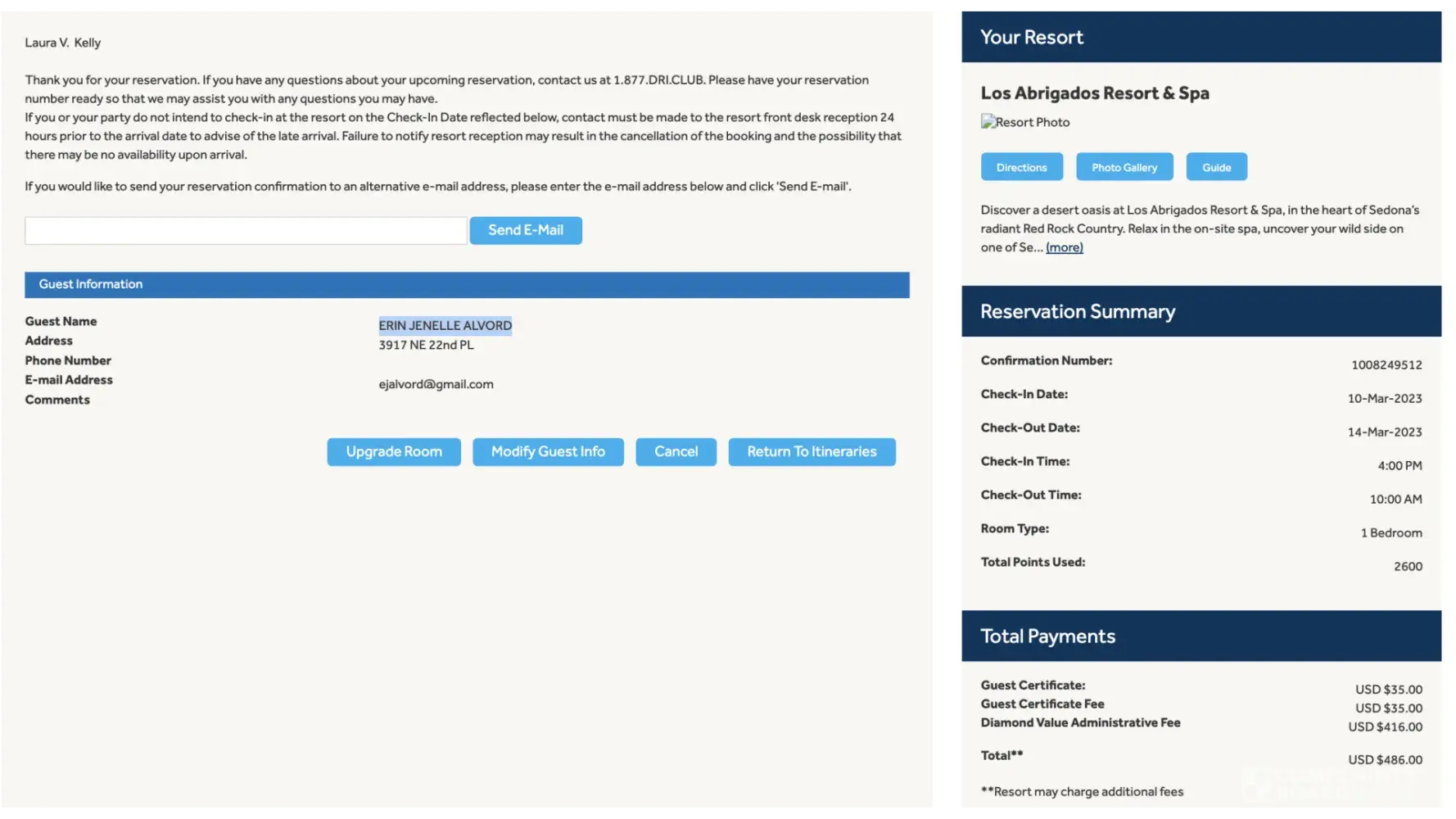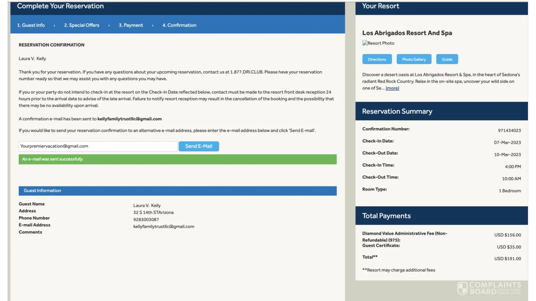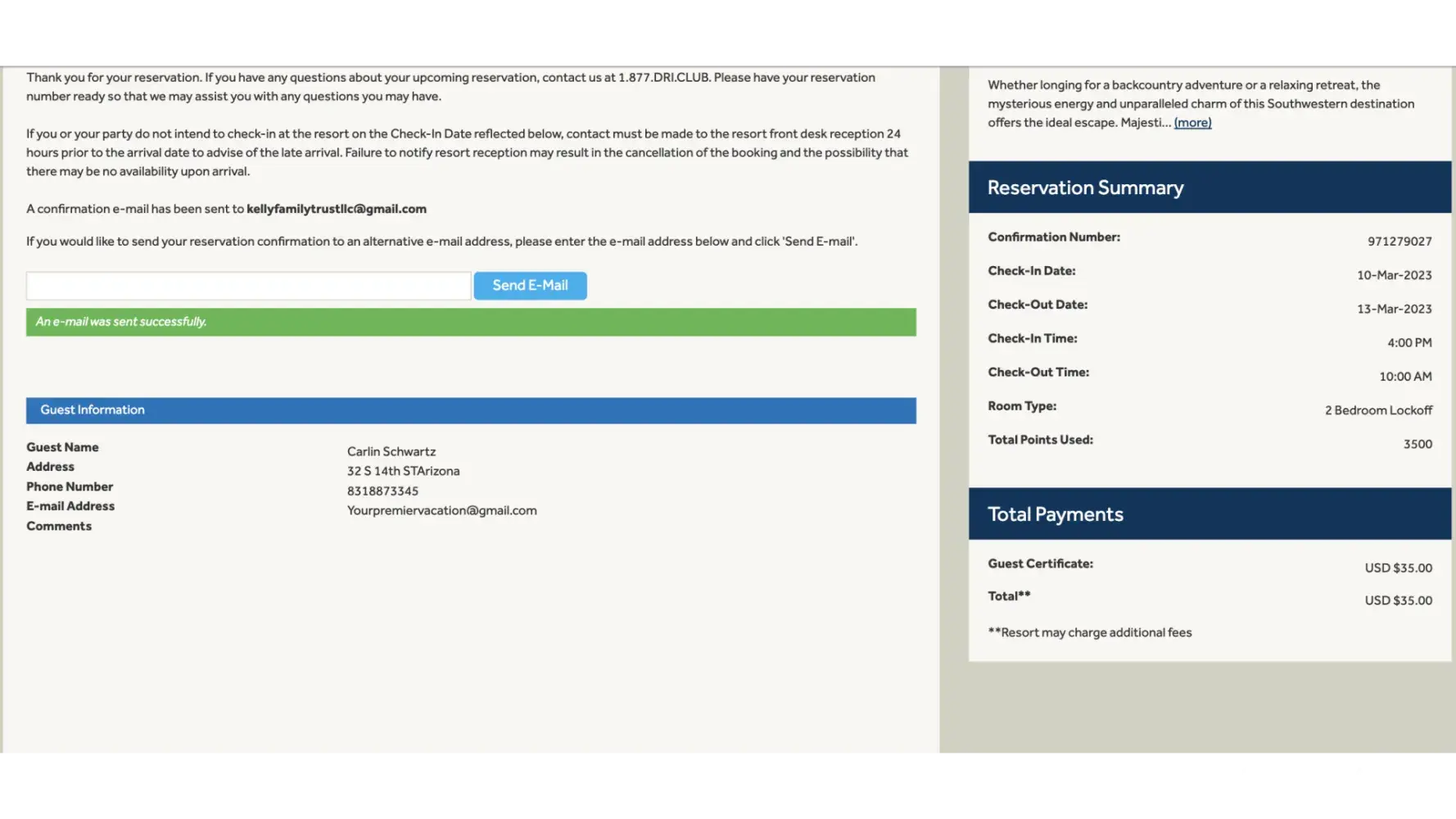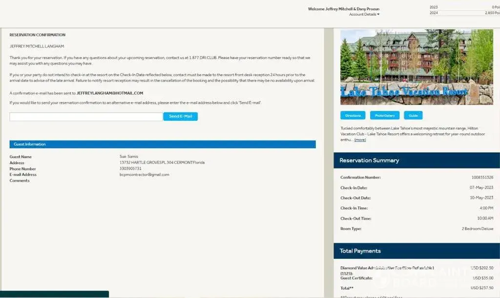 Desired outcome: I'd like my 11,500 points from Sedona Springs and my 2023 Diamond Points in my account now. I'd like an email, or text, to confirm it. I'll be reporting to BBB soon if it's not resolved.
