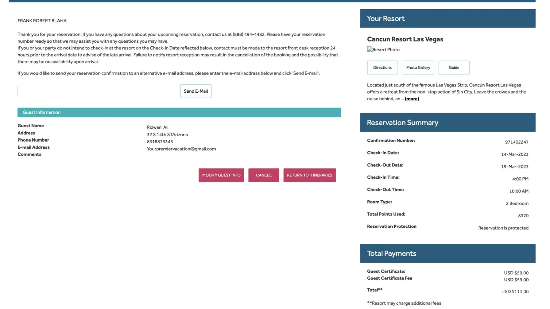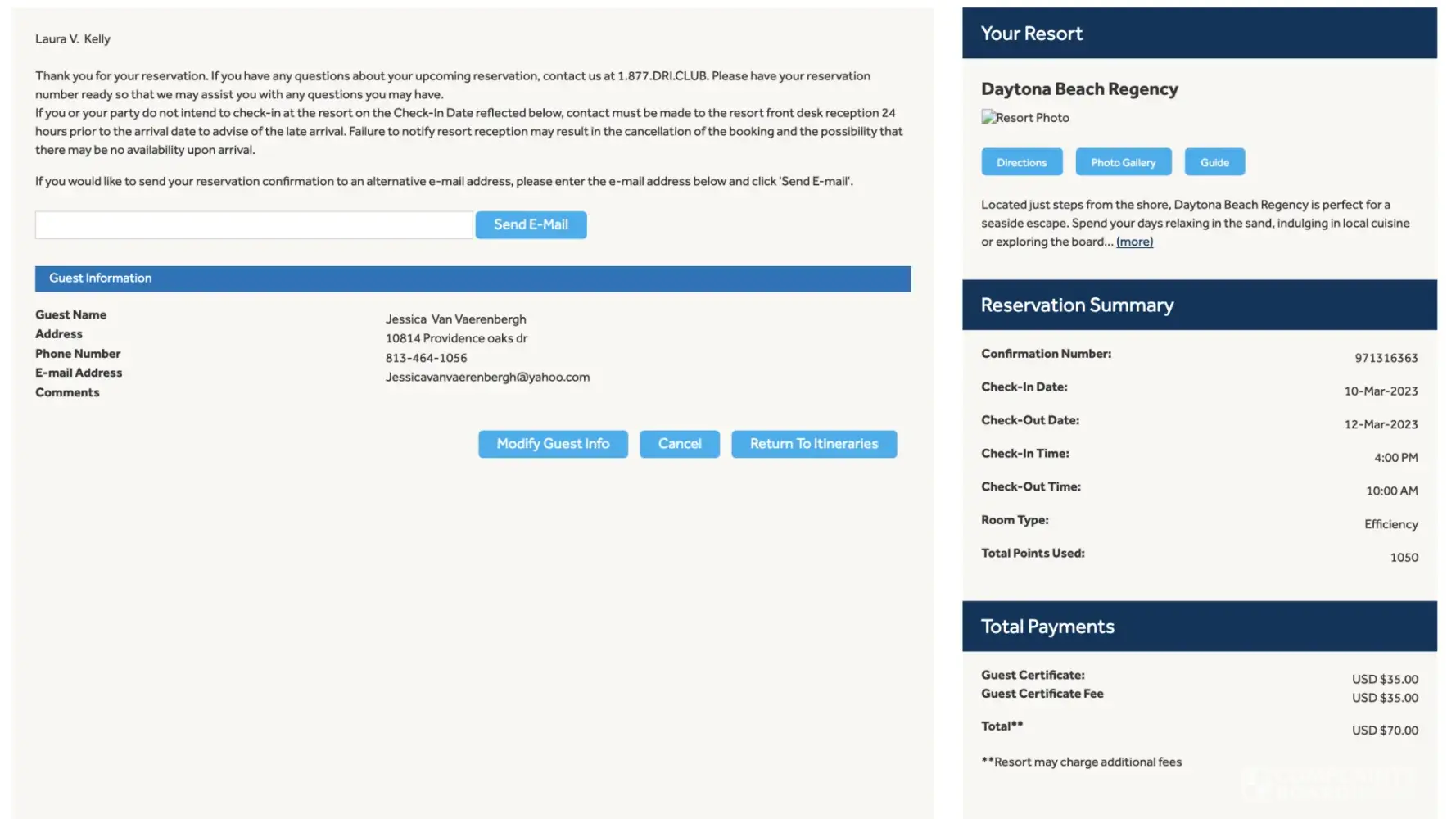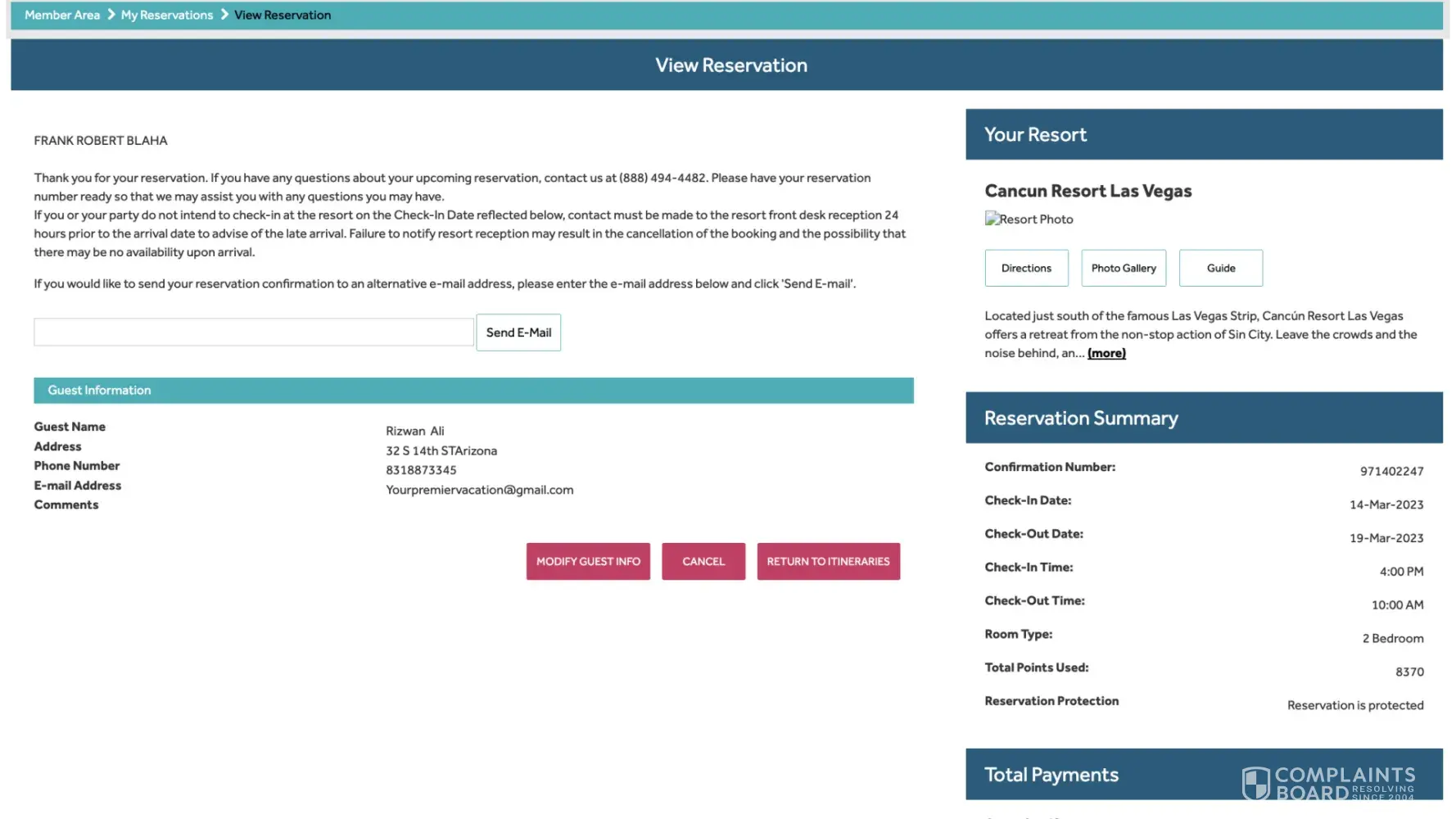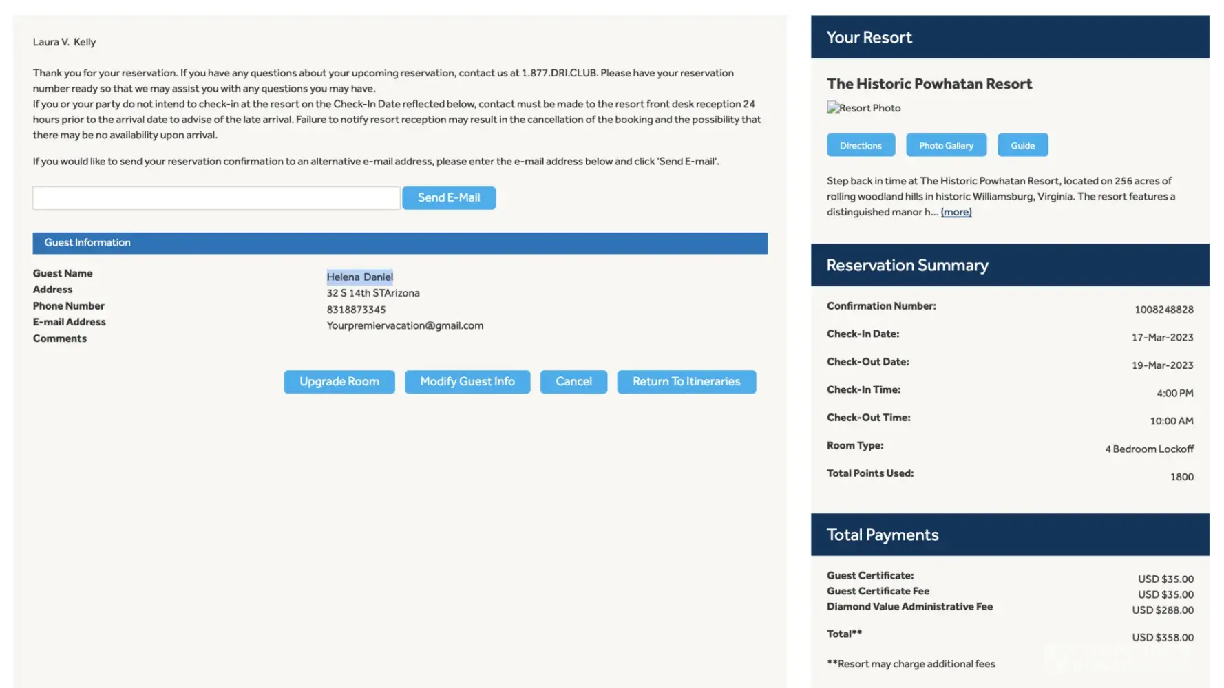 Desired outcome: I'd like my 11,500 points from Sedona Springs and my 2023 Diamond Points in my account now. I'd like an email, or text, to confirm it. I'll be reporting to BBB soon if it's not resolved.