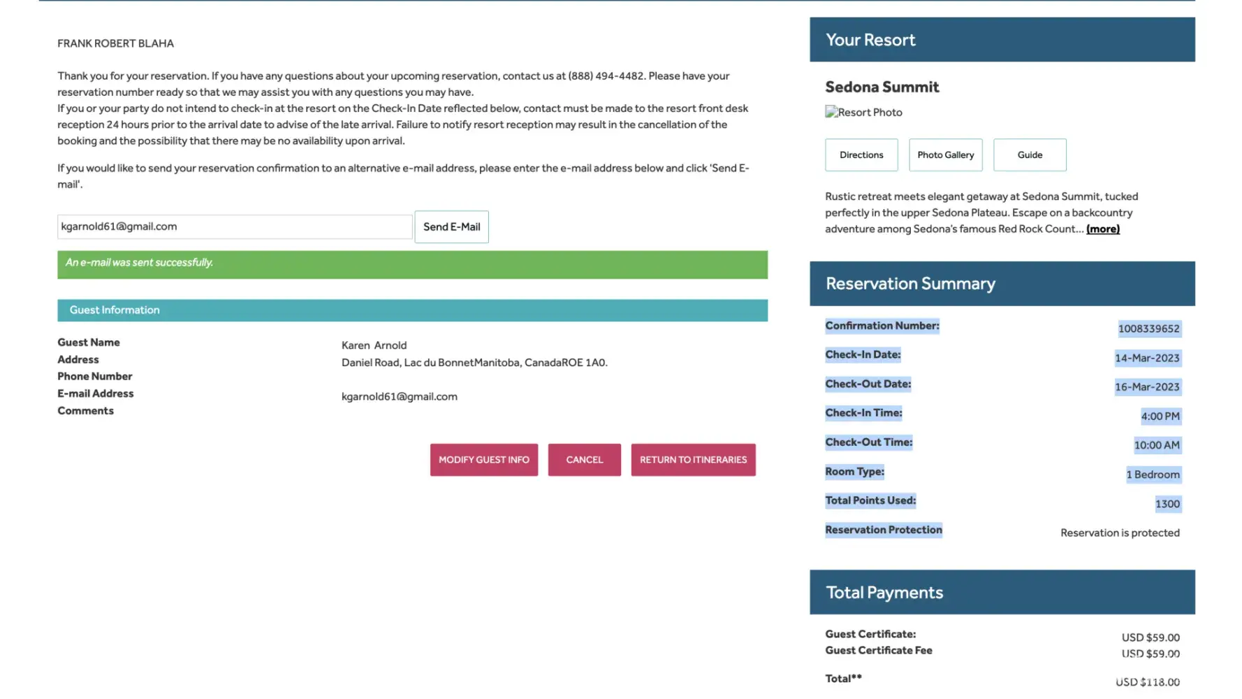 The first vacation I booked on this Time Share was Sedona Arizona on Nov.