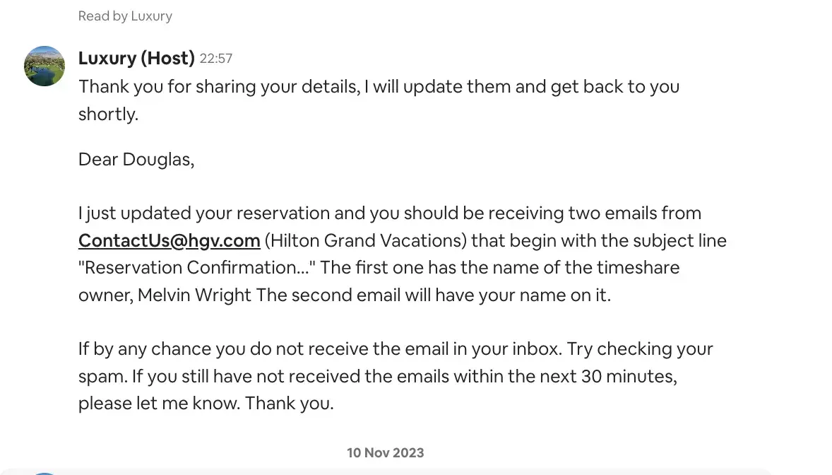 I bought the sampler package while on holiday in Maui, with a view to returning on vacation to Hawaii and possibly buying full ownership if I liked it. It cost $4,000 USD and I planned to return in March 2020 - however Covid struck, and my country (NZ) closed its borders, re-opening them at the end of July 2022. Aware this meant the only property I could use my sampler package was Queenstown, offering to attend the required presentation virtually before hand. I proposed this, they declined. I explained this meant the contract fell under frustration of purpose (where something not caused by either party prevents the contract being performed, which would result in a refund). They refused. They assured they would keep an eye on the international situation and I would be able to take my holiday once the Covid restrictions ended. In between times they sold to Hilton and provided no communication. Their international phone numbers don't work, they don't respond to emails, and when trying on Skype, I get disconnected. Basically they have provided nothing, kept the money, and made it impossible to get anything in return. Plus they have failed to follow the law in terms of frustration of purpose.