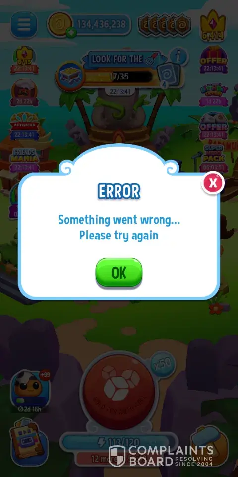 I have spent $20 when I first started the game months ago to try to achieve a promotion where they were offering $50 through a third party to anyone who could get to level 20 in 12 days. Since then, I haven’t spent a dime. Don’t expect them to give a dang about you if you aren’t spending money. Frustrating. Be responsible if you’re going to build an app, do it right and have decent customer service.