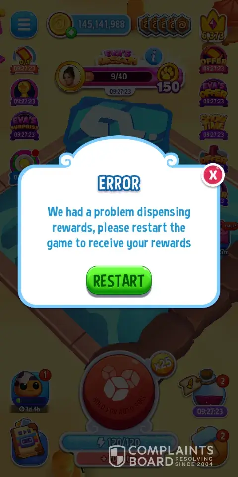 When I first started this game, I REALLY enjoyed it. However the further i got, the more I found myself angry at how buggy the game is. Today really pushed it over the top for me. I had won 850 rolls from the special event and I was going to wait a bit before using since I was busy. After about 20-30mins I came back to the game and noticed that the 850 rolls I had JUST won were gone. Completely gone! And it’s not like it set back as if I never got it and went back into the progress bar above, allowing me to win it AGAIN(even though that would’ve been just as annoying), instead the bar/prizes itself continued on(the next prize being 20mil). I contacted support team IN game and only got one message back that described nothing that I was experiencing. When trying to explain that the issue they were giving me wasn’t even the problem at hand I got no message back. I went to the site itself and filed a request and still nothing. Now in a game like this, especially beginners like myself, 850 rolls is A LOT and it took a lot of time and rolls to get that prize so I was a little upset. I’ve even put money into this game because I was genuinely enjoying it, but now I’m furious that I’ve lost that many rolls as if they just vanished and the Dice Dream Team are doing nothing to help resolve this.