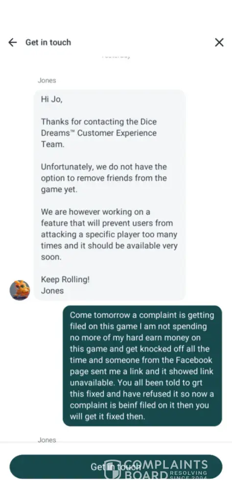 I am writing to express my disappointment with the customer support provided for Dice Dreams on the iPhone app. I have spent a significant amount of money on this game, but unfortunately, every time I encounter a problem with the game, it seems impossible to get any assistance from the support team.