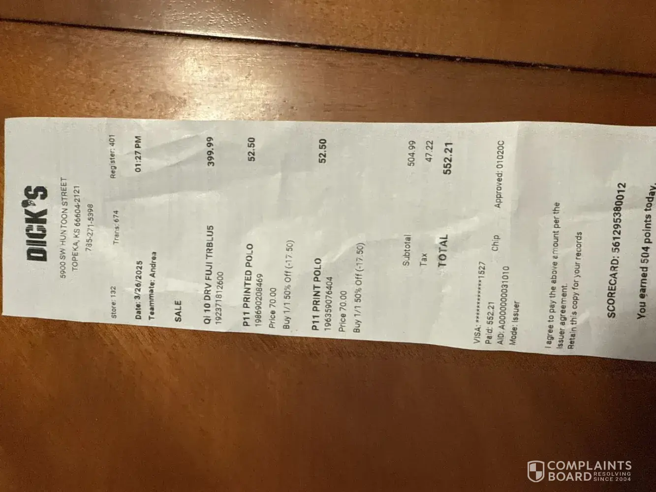 Thank You Dicks Sporting Goods corporate office for stepping up giveing me more than a fair solution
