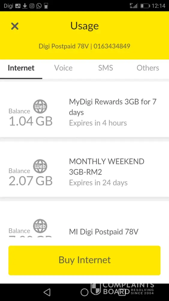 Saya mpunyai baki my digi rewards 7days sbyk 1gb dan saya tlh lakukan download. Tetapi digi potong baki monthly weekend saya. Sedangkan sepatutnya digi potong tlebih dahulu my digi reward jerana ianya masih aktif. Sy tidak bpuas hati kerana digi memotong monthly weekend saya. Mohon penjelasan adakah digi sengaja membuat penolakan utk membuat pelanggan membeli lebih banyak penggunaan internet