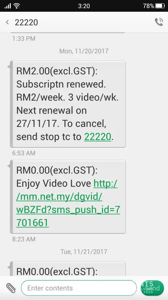 I received the renewal message every 3 to 4 days and it is really annoying. I even send "STOP" to unsubscribe due to ridiculous charge but no response.