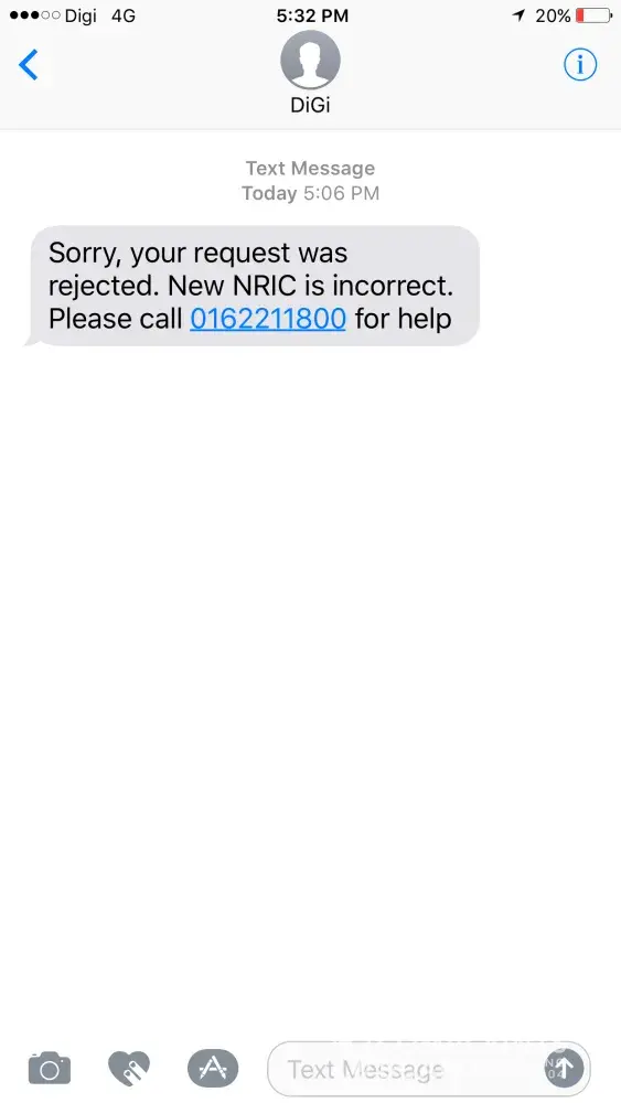 I am loyalty digi postpaid user since 2007, recently I'm trying to switch to Maxis because want better line in my area. After submit, digi rejected my request and send SMS told me that my new NRIC is incorrect.
