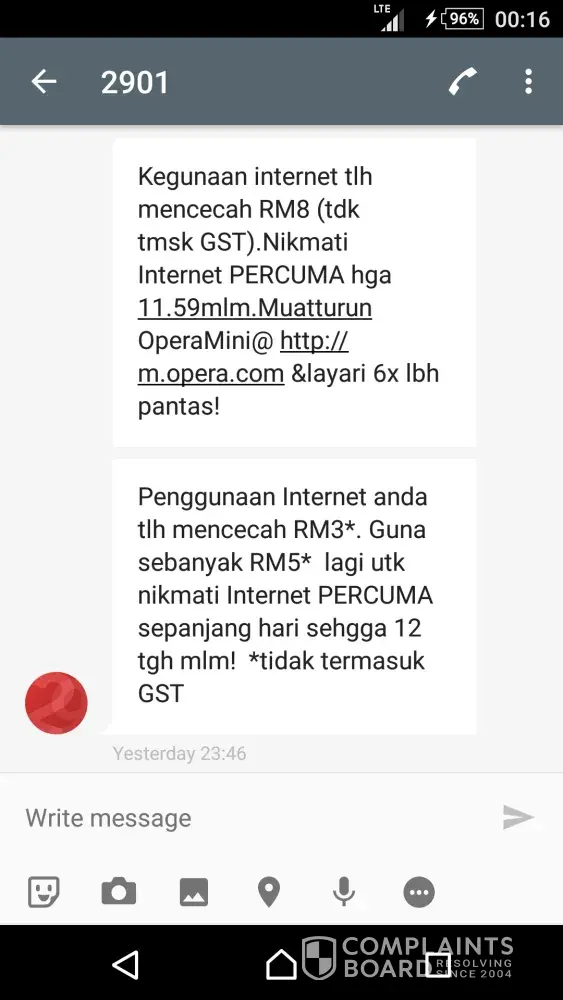 And yes, I am using the free internet from the rm8 usage to lodge this complaint.
