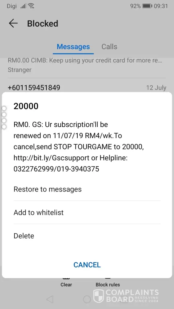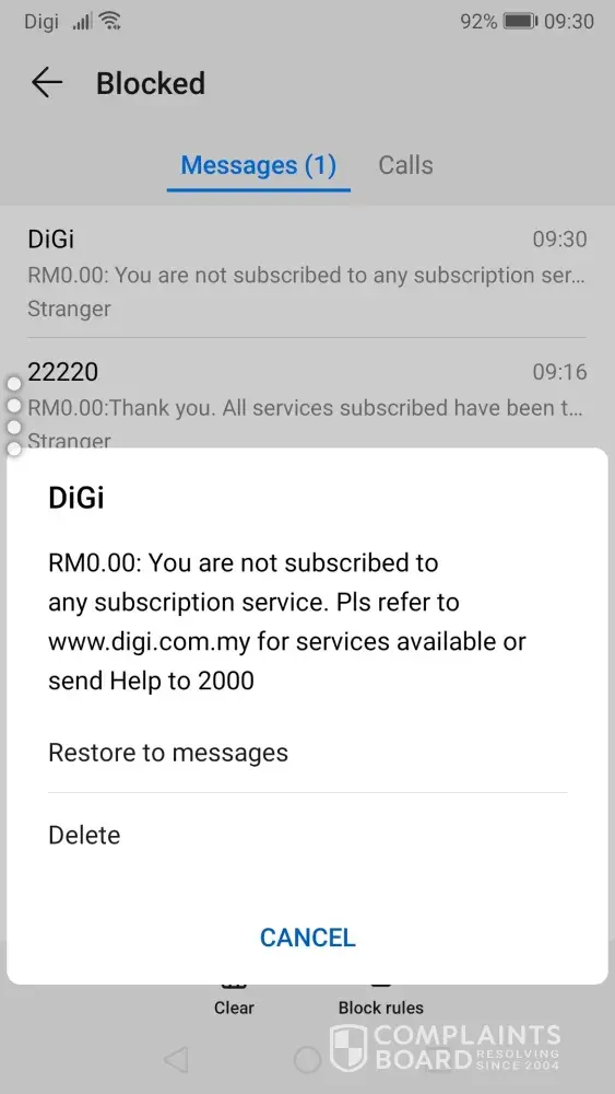 I'm complaining about the new premium service which received from 20000 stating that I'm subscribed to the service and it being renewed in weekly basis. As checked, I didn't subscribe to any service even 3 series shortcode. I have unsub the service by send "stop all" to 20000 and receive message from 22220 saying your service has been unsub. I need a clarification on when I'm subscribed to the service. If yes, please provide me the screenshot the message/log that stating I'm subscribed to the service. I have received a message from DIGI as well stating you didn't subscribe to any service.