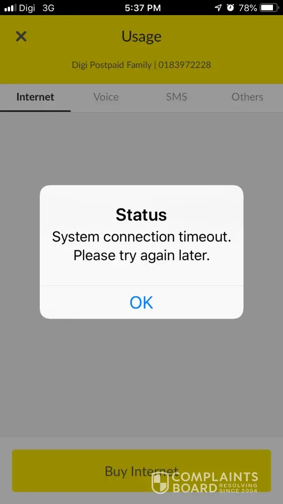 Hi digi.saya mau komplen.Kenapa quota add-on yang saya langgan hari ini tidak masuk dalam system sedangkan kredit dan mesej sudah saya dapat.Kredit sudah dipotong tetapi quota add-on tidak masuk lagi.untuk pengetahuan selepas saya melanggan.Telefon saya blank/shutoff..saya turn on telefon dan dpt mesej langganan quota add-on saya telah berjaya.Selepas saya periksa d *200#semak quota..apa yang saya langgan tiada masuk d dalam system.please fix this!