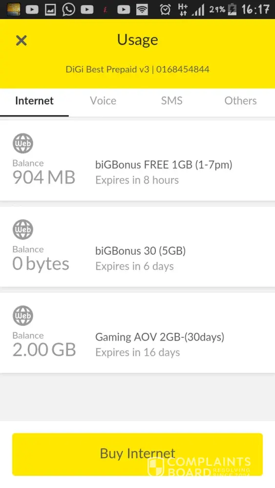 Hello. I use plan digi 58.Actually my problem is, this weeks, i have to use many data so i bought internet Rm10 for 15 gb for 7 days because i need to install many apps as student material so i dont want to waste my 5GB data.But just now, i got message that i use 75% of monthly weekend data and also my youtube data become less but my 15 gb for 7 days still many.May i asked why?its happen two times, and its last month which i not really care and this month is very obvious, so I just want to know cause this is my first time use digi.Maybe its because hotspot or anything else?Sorry, for complaining but it is serious for me, cause i need to save money. Thank you and have a great day.