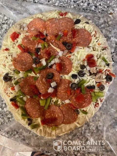 The package also says that the pizza is a full size pizza. This is NOT TRUE! It makes me very mad that I spent money to have the extra part and now have less to feed my family than if I would have bought