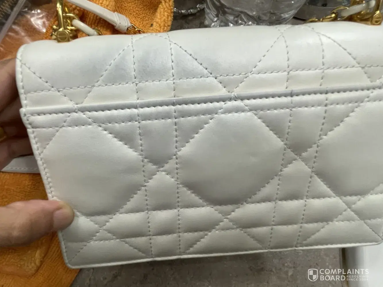 Hi I want to chat with someone about customer service from Dior . I have one mini Miss Dior small white color . I been using only 4 or 5 times only since I bought last year July . I do not happy about the stain that I got and can’t remove at all . I am so upset about the quality of the product and stain can’t remove from white leather . I am so disappointed after I paid high price and I not got high quality.