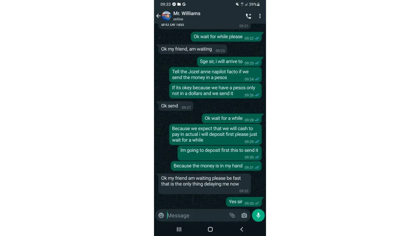 Dear Customer, we are still waiting for you to clearance of the package that was been sent to you by Mr Musa Abdul, you are to get the payment done as soon as possible. our agent there in Philippine has reported to our office that you are not communicating with our agent. You need to know that it is dangerous to abandoned the package there in airport for long time that is why our agent told you to make the payment.