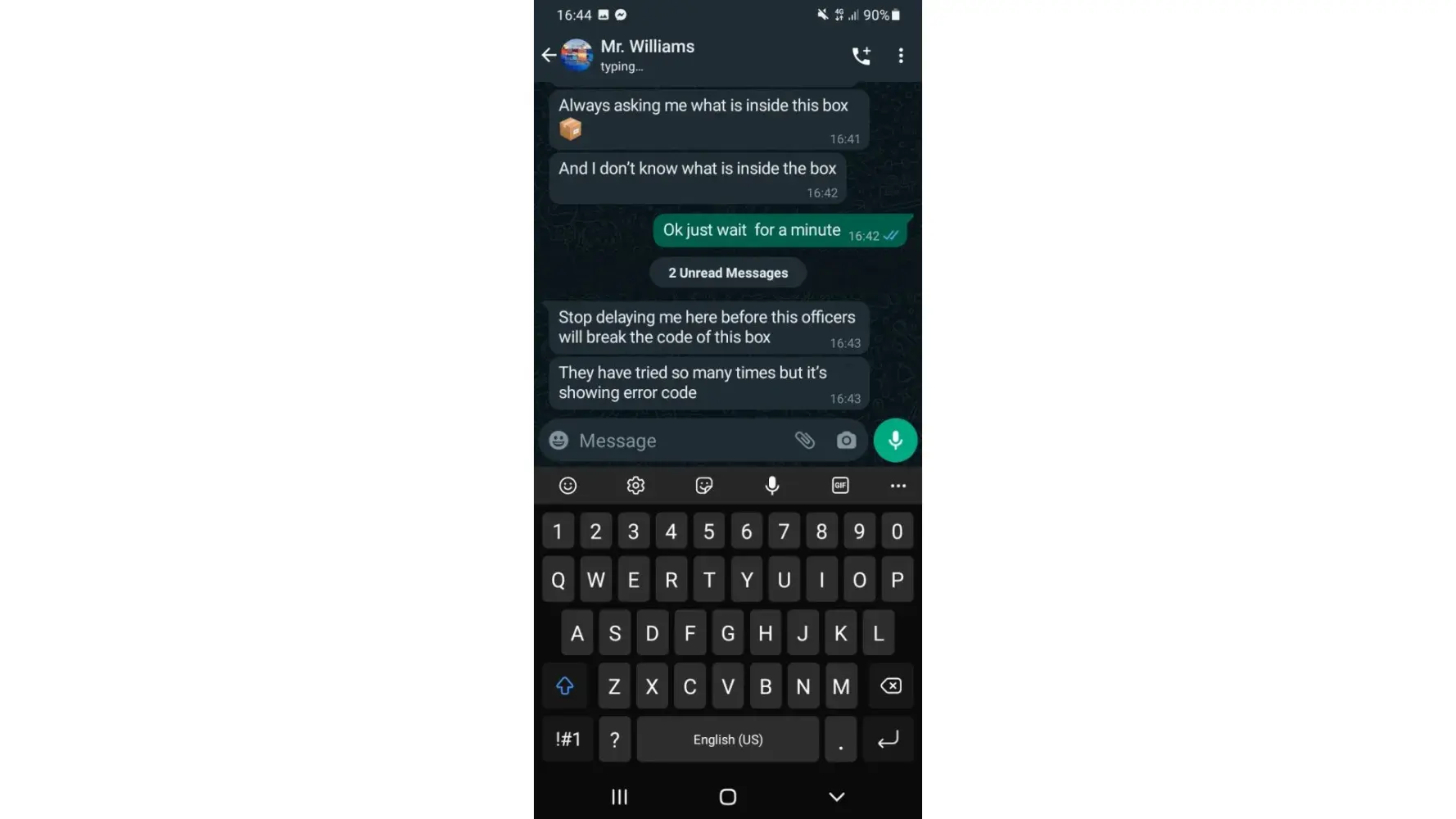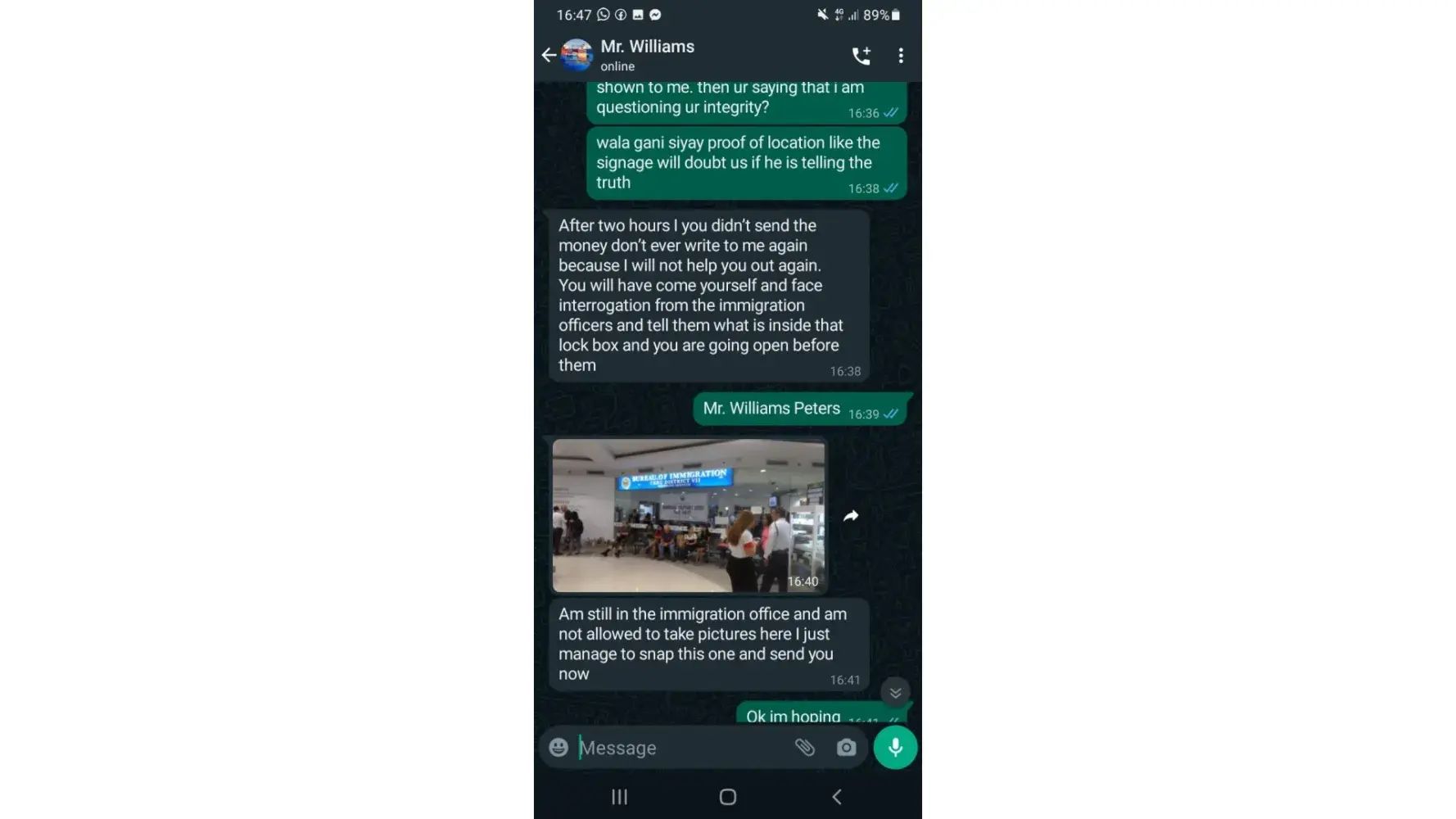 Well, I didn't want to pay and told him the same via text that I didn't believe him. And he just got really angry really fast and became all spiteful. From "dear, i miss you" to "you are fool". And the parcel is suddenly forgotten - eventhough he kept pressing me to check in the beginning. Now that the scam is exposed, he retreats with anger. Where do they get this sense of righteousness from i wonder?