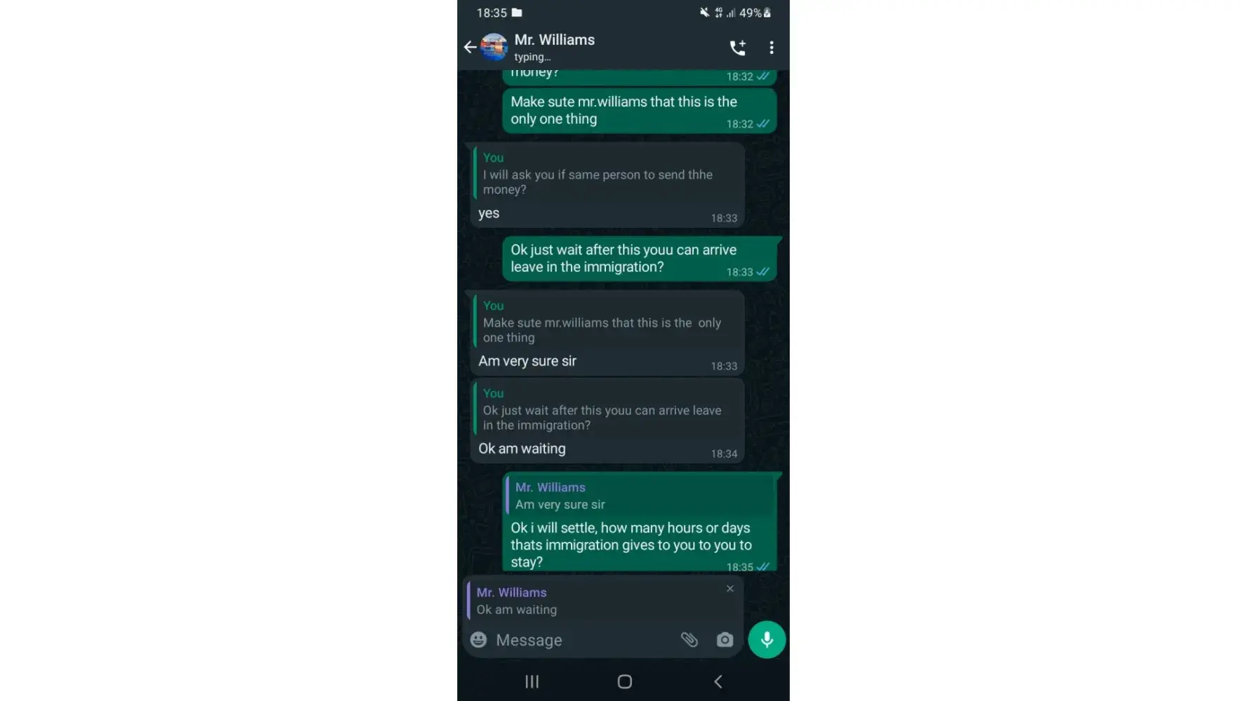 P.S.: His English was consistently broken as well. Eventhough he claims that he was born and raised in US and is permanently working in the UK. And he would type messages to profess his love in form of poetry. Totally not credible.