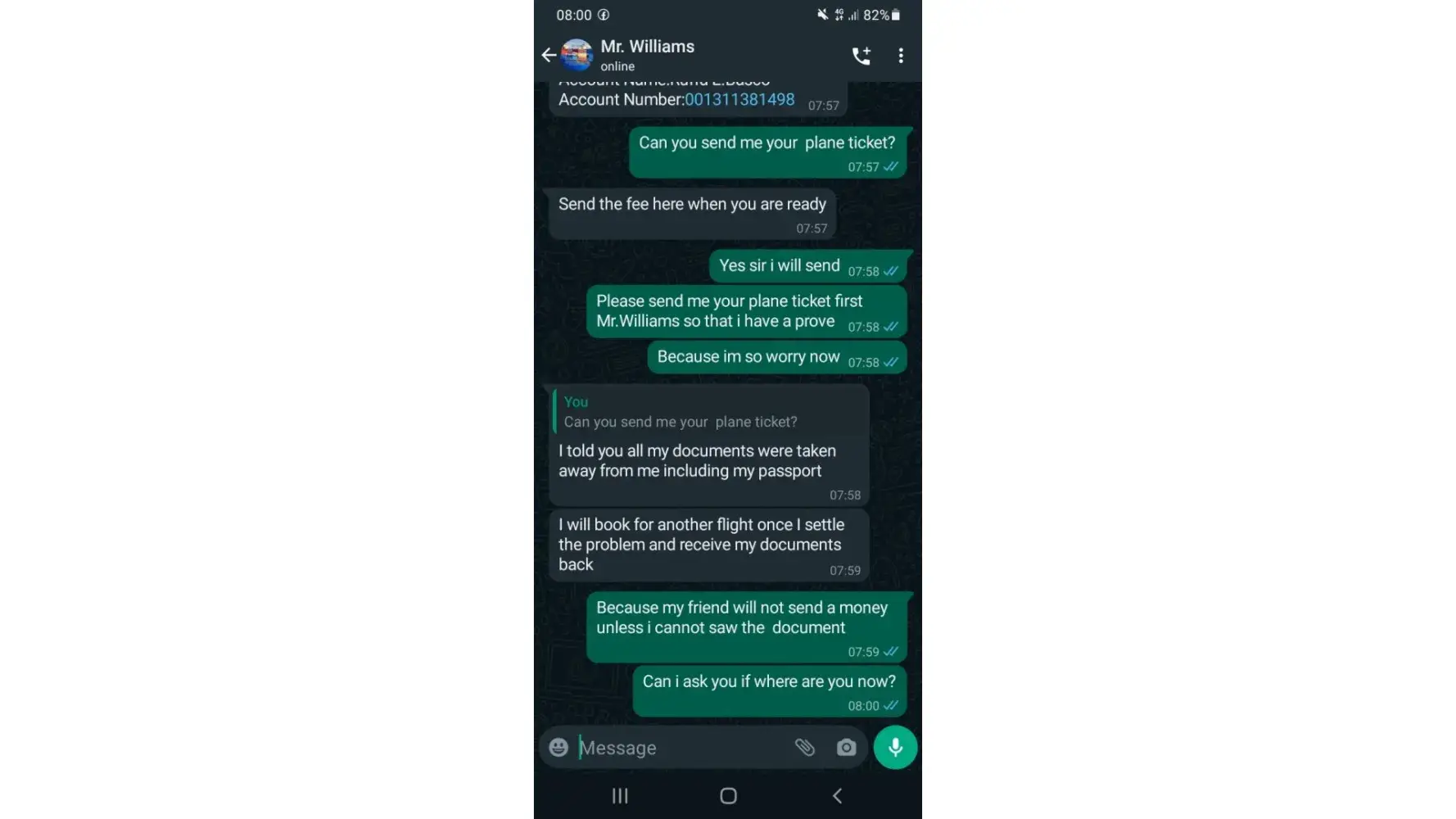By the 3rd weeks, he said he'd sent a luggage of gifts for me with iPhone 10, iPad, PS4, gold chains & 8500 pounds. I was later told that the cash was for me to pay for the tax clearance in Malaysia which is odd. Cos' my place of residence isn't even in Malaysia. I was contacted by this dubious Malaysia number which informed me to pay $3000 for clearance via bank transfer. Most courier services do not do bank transfers via personal accounts. So this definitely raised alarm.