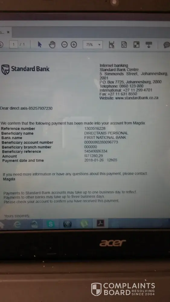 i called direct axis for a amount so that i can pay my settlement amount on my account. I was told that i have to pay a installment amount as well as the settlement amount so i did there for i had to sent my proof of payment to the e-mail address they gave me.([protected]@directaxis.Co.Za)