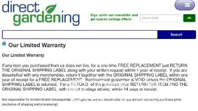 Ordered 3 grape plants from Direct Gardening on April 20, 2020. Towards the end of May became concerned that my order #389650 hadn't shipped. Contacted them by email because they never answered their phone. End of May I emailed them telling them that if I didn't receive my order within a week I wanted a refund. No response. June 2nd I requested a refund (Email) as the planting time was over for any reasonable chance of survival of bare rooted plants. On June 4th they shipped the order even though I requested a refund. The plants arrived mostly dead (no live buds). Doing some investigation I realizing this company has some serious problems, I contacted my credit card company and reversed the charges. Direct Gardening fought it through the dispute process getting the charges replaced. The credit card dispute process was onerous and time sensitive. I felt I could always fall back on their warranty. I now asked them to honor their warranty. They refused stating it's because of the credit card chargeback which they still received payment. They didn't honor my request for a refund and now refuse to honor their warranty. So I'm now taking it to others to resolve this dispute.
