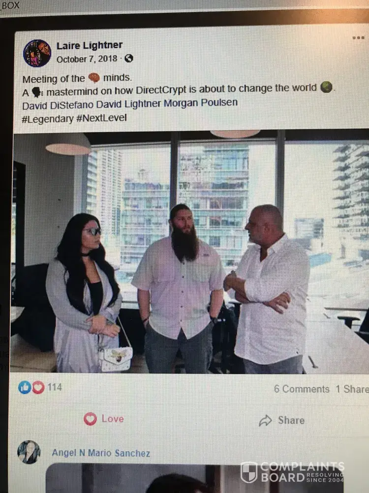 Laire Lightner and her husband confounded Direct Crypt with him. She underhandedly left the company without telling those who she suckered in to investing into the company. She knew David had prior issues with people but she still advertised and supported David. She needs to be investigated as well! Robert Macpherson ended up scamming people as well. David brought him in. David is now involved in a new company and I assume he is taking advantage of them since he is a poor excuse of a man who can’t work an honest living. Stay far away from these people. Get the media involved!