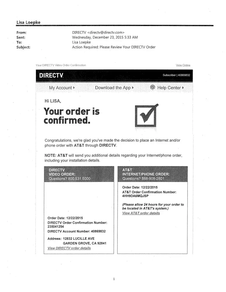 On 1/8/16 att and dtv confirmed my entire bundle order was cancelled and I would not be charged for any of it.