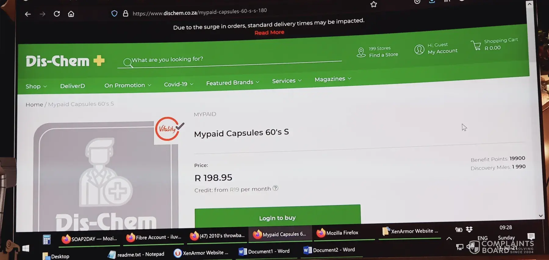 10minutes later a driver from RandRidge Mall DisChem showed up at my house.