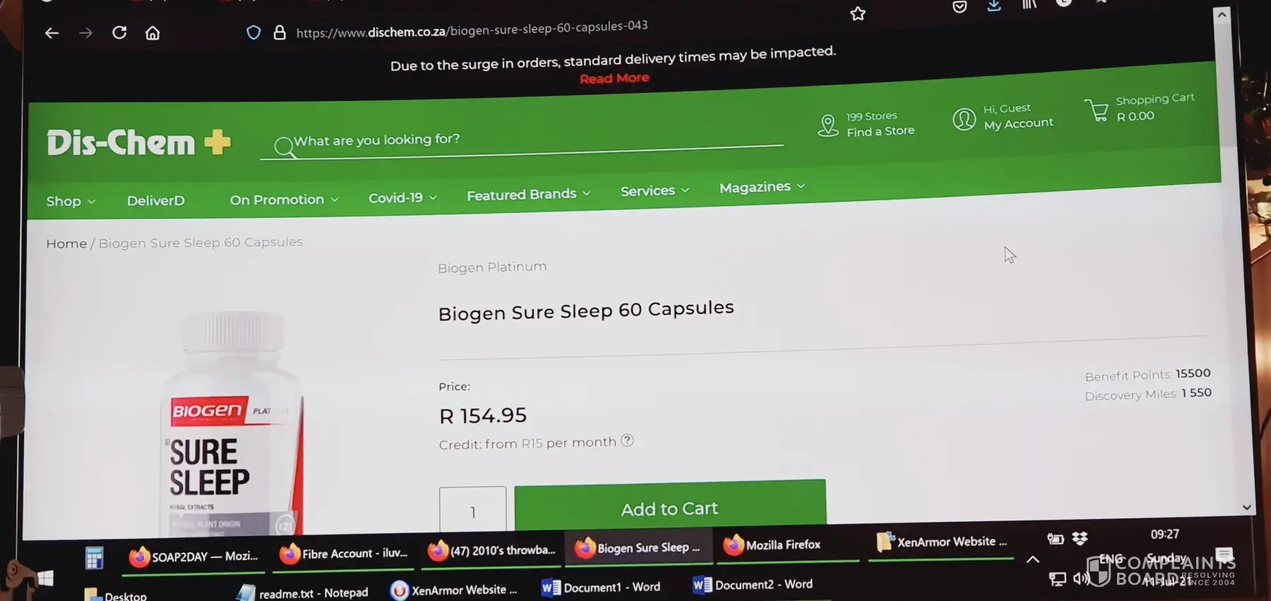I emailed a big order through to Benmore Gardens DisChem, 3 days ago (7th Jul 2021). They didn't deliver the day before yesterday, so I emailed them asking why my order wasn't delivered. The lady (Linda) replied, stated that they had too many COVID cases and couldn't deliver (i have email proof).