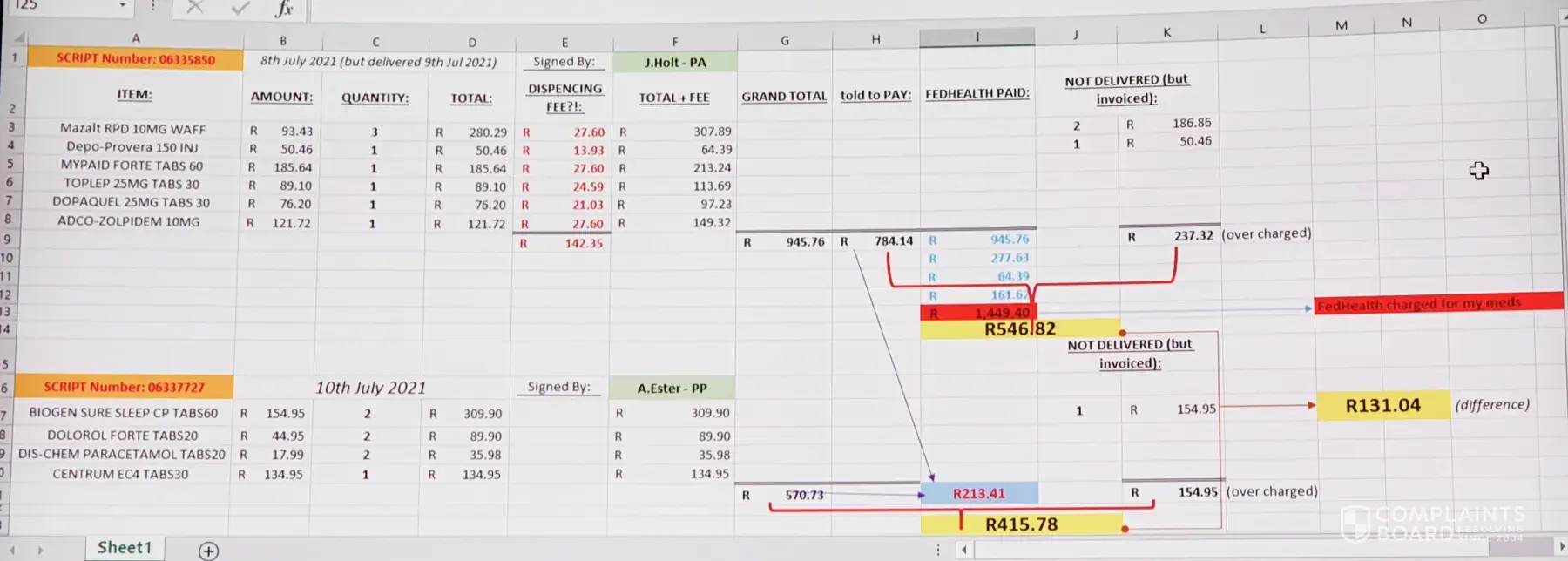 Secondly he prescribed both under the incorrect name ! They where issued to my wife ! I need answers to this and have lodged a formal complaint with the Pharmacy(SA)