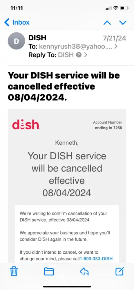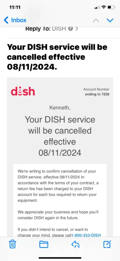Desired outcome: Cancel all fees that Dish wants to charge me due to the above circumstances.