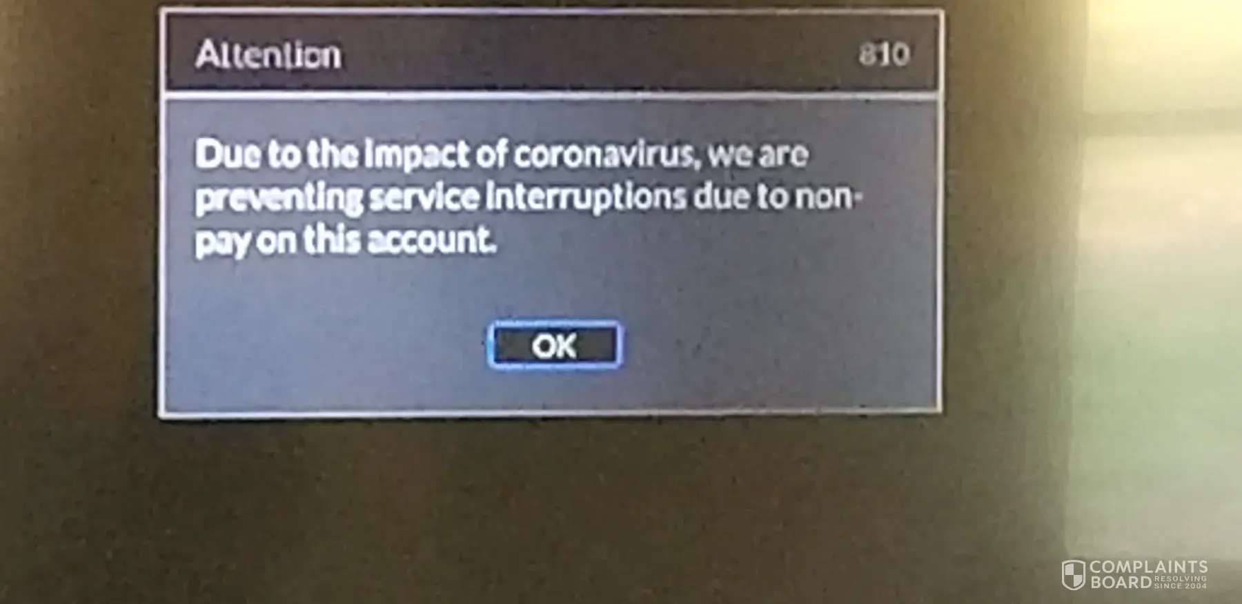 Message on screen saying no interruption in service due to covid-+8 but service was interrupted