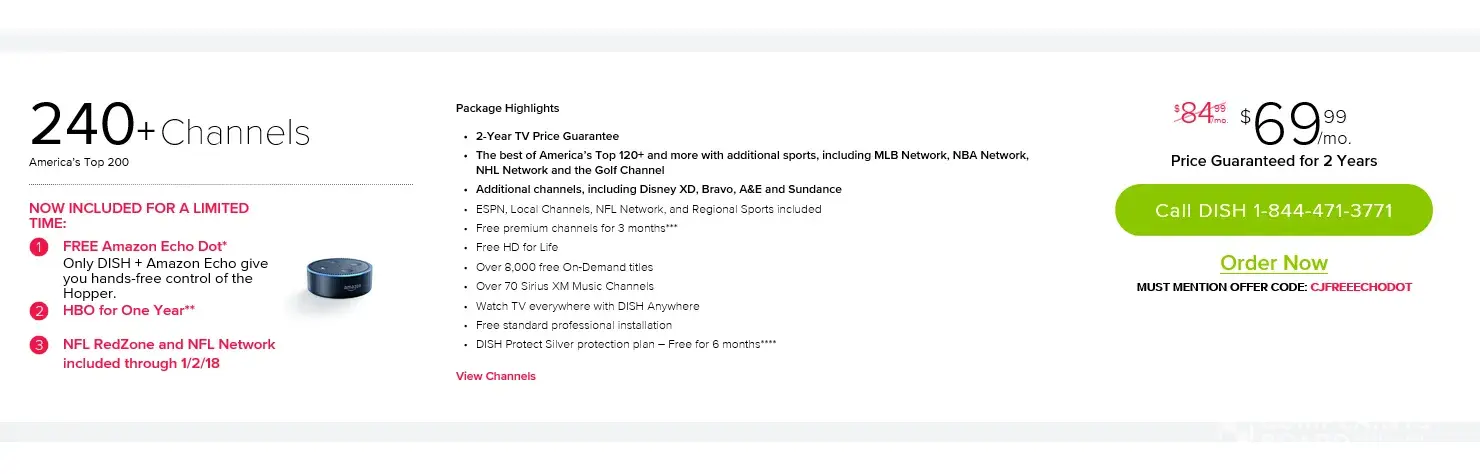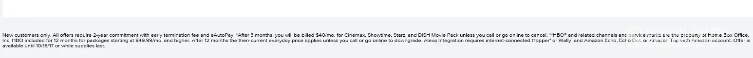 I ordered Dish in September with their promotion of free HBO for a year and free ECHODOT now they are saying I can't have either. I am unsure how to process with their false advertising . I have contacted Dish at least 5 times of which 3 said the echodot would be sent in 30 days. It has been over 30 days. In the fine print of my order it says you need a Hopper or internet enabled Wally to receive an echodot. I have an internet enable Wally