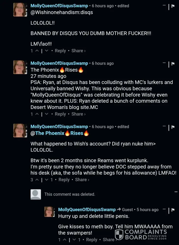 Disqus has globally banned me twice, the 2nd time just yesterday, for defending myself against the harassment by those individuals.