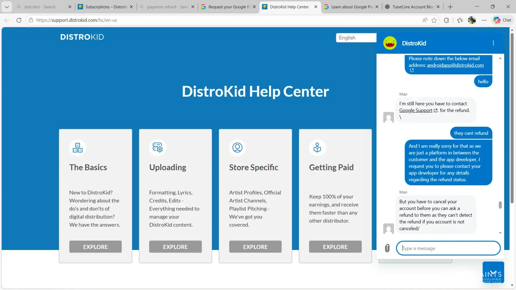 I cannot find anything related to this on the distro kid help page and the phone number I found is disconnected it’s also concerning to me that this page tells me my complaint is too short to attract attention that statement implies I may not be entitled to support? my inquiry is concise and does not require an inflated word count i would like my money